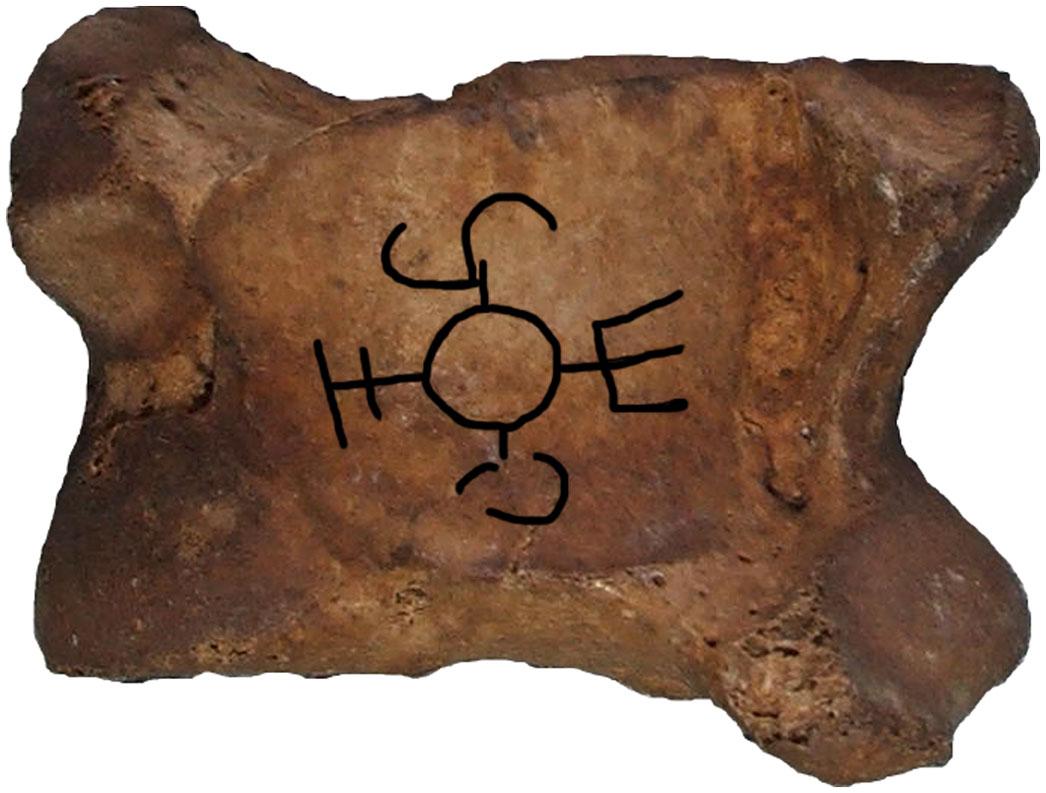 Figure 1.1 Composite symbol (marking emphasized) on sheep anklebone from Gol Mod II cemetery.