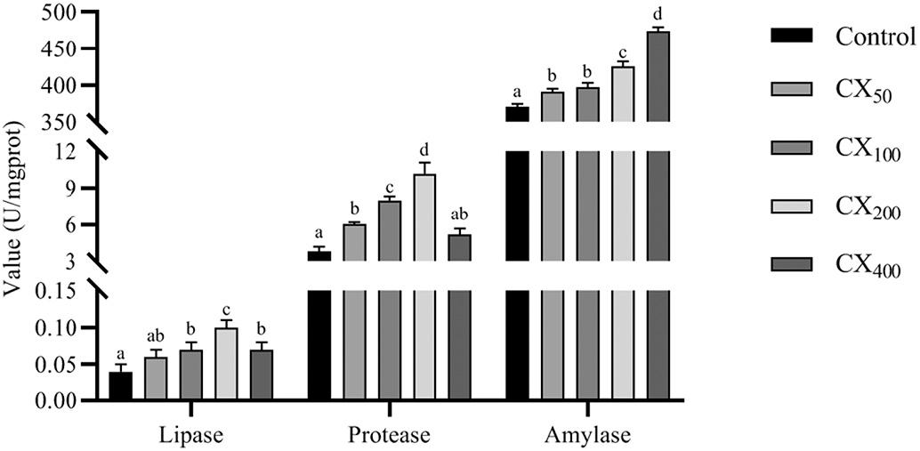 3.6. Digestive enzymes activities