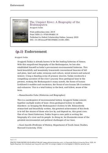 The Unquiet River: A Biography of the Brahmaputra 1st Edition Arupjyoti Saikia