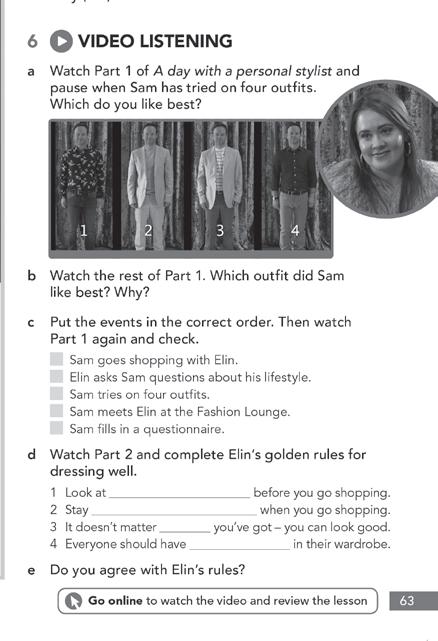 EXTRA SUPPORT Before playing the video / audio, go through the listening scripts and decide if you need to pre-teach / check any lexis to help Sts when they listen.