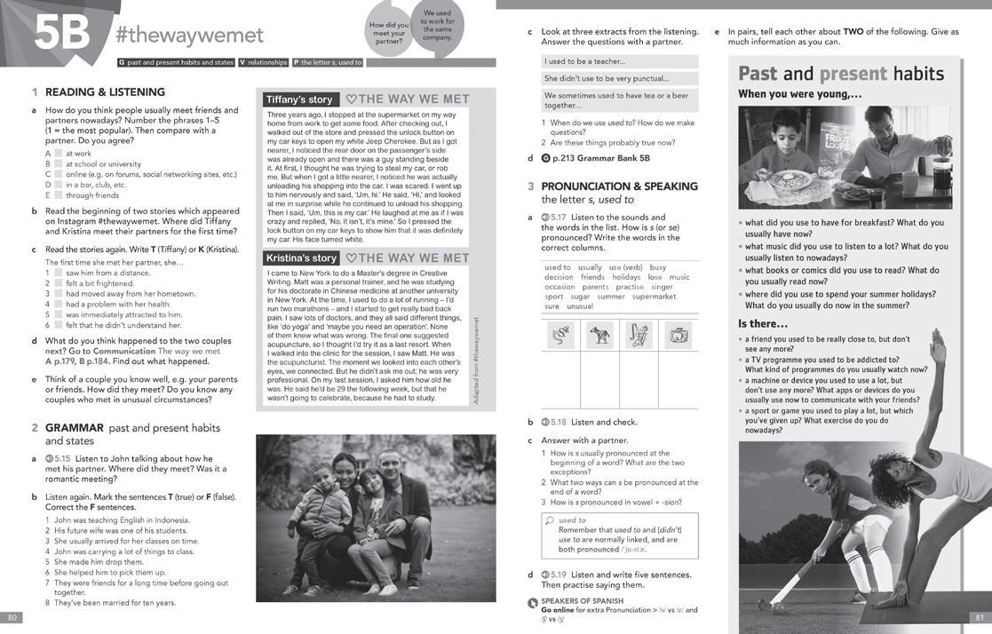 We have tried to provide contexts for new language that will engage students, using real-life stories and situations, humour, and suspense. The Grammar Banks give students a single, easy-to-access grammar reference section, with example sentences with audio, clear rules, and common errors. There are at least two practice exercises for each grammar point. Students can look again at the grammar presented in the lesson on Online Practice. The Workbook provides a variety of practice exercises and the opportunity for students to use the new grammar to express their own ideas.