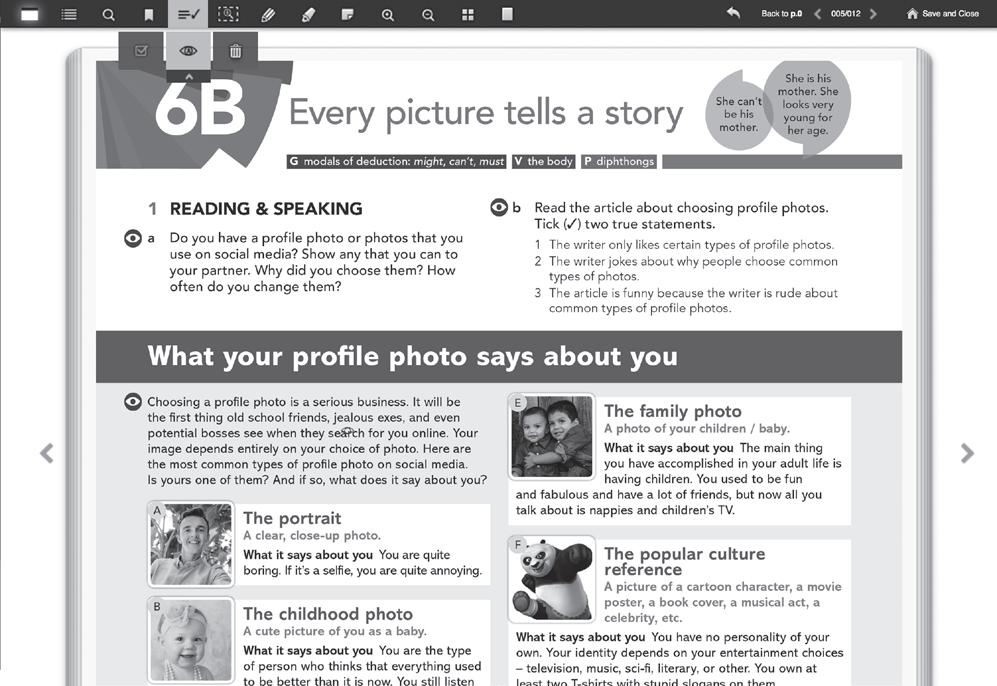 • Quick Tests and File Tests for every File, as well as Progress Tests, an End-of-course Test, and an Entry Test, which you can use at the beginning of the course
