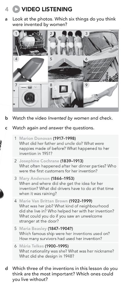 b Focus on questions 1–7 and give Sts time to read them. Play the video / audio again for Sts to watch or listen a second time, and answer the questions.