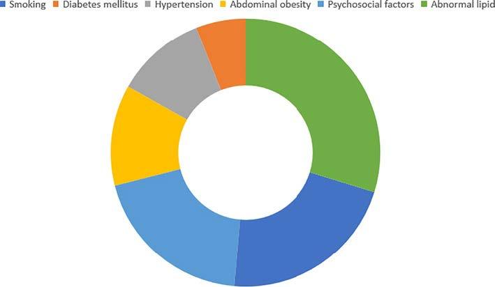 IntheFraminghamHeartStudy,sign ificantpredisposingfactorsareidentifiedforthedevelopment ofCVD.3 Theseriskfactorsarevalidatedinmanyotherstudiesand,hence,ge neratefrequentlyused predictivemodels.IntheINTERHEARTstudy, itwasshownthattherewereriskfactors(Fig.1.1) andlifestylehabitsthatleadto acutemyocardialinfarctionand eliminationorcontrolofthese riskfactorswasshowntoyieldasignifi cantdecreaseincardiovascularevents.4 WorldHealth Organizationtargetedtodecreasetheriskfactors,suchashypertension,dyslipidemia,obesity, smoking,alcohol,diet,andsedentarylifestyletill2025. 2 Controllingriskfactorsandlifestyleis ofgreatimportancewithregardtothepreventionofCVD.Whentheprevalenceoftheseriskfactors andlifehabitsisthoroughlytakenintoconsideration,itisnotabigsurprisetoseemorbidityand mortalityofCVDremainsonthetoplistinthefollowingdecadesoftheESCcountries.Riskfactors andlifestylehabitsforthede velopmentofCVDarereviewedi ndividuallyinthefollowing.