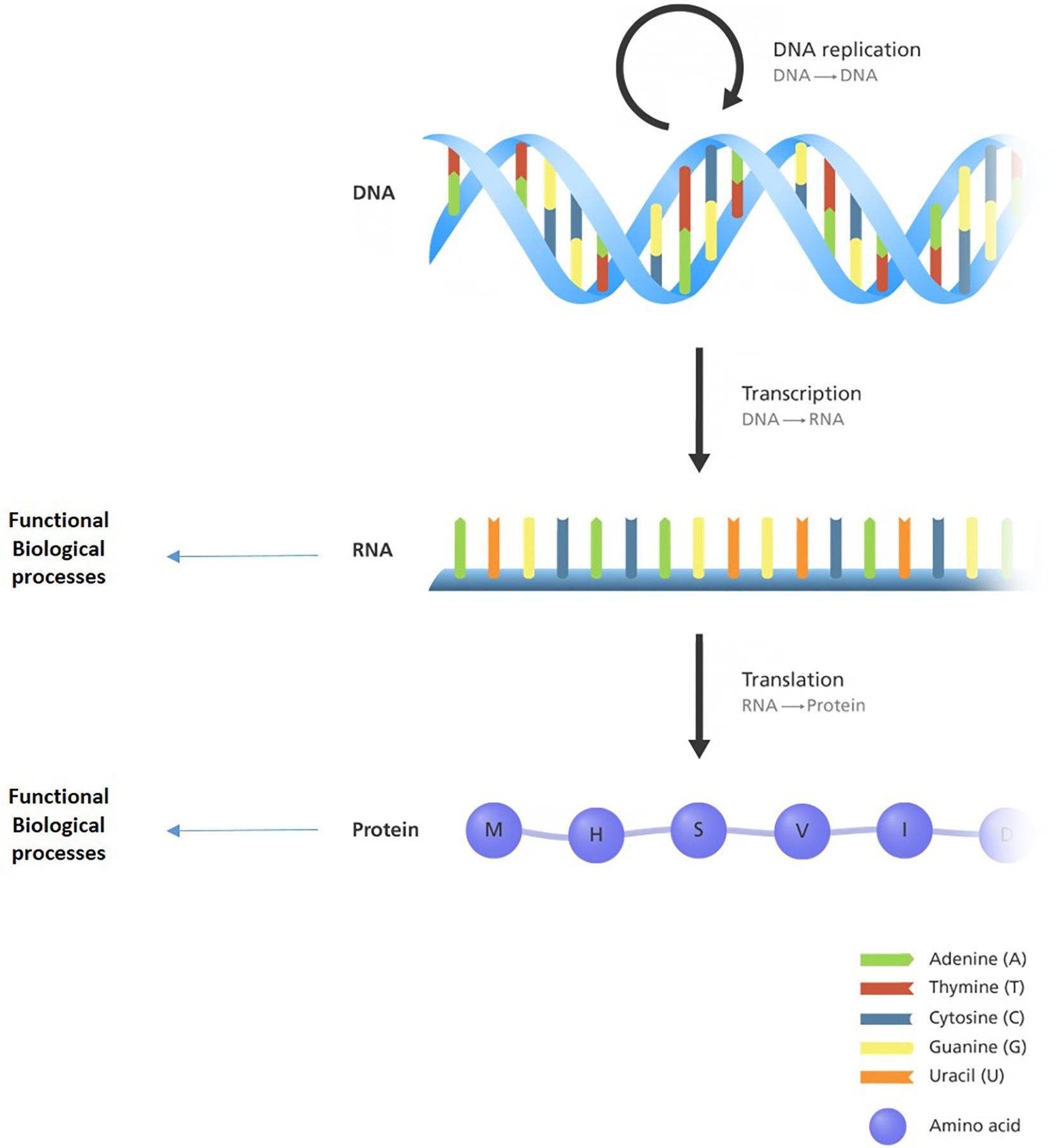 Anillustrationofthecentraldogmaofmolecularbiology,theflowofbiochemicalinformationfromDNAtoRNA andprotein.