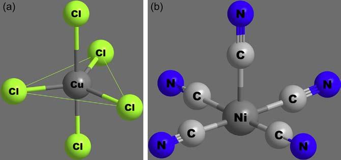 Figure13 (a)Trigonalbipyramidal[CuCl5] 3 and(b)Squarepyramidal[NiCN5] 3 ions.