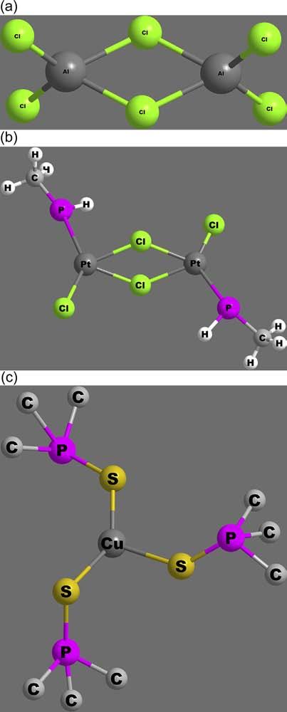 Dimerizationandbridgingin(a)AlCl3 (b)PtCl2P(CH3)and(c)[Cu(SPMe3)].