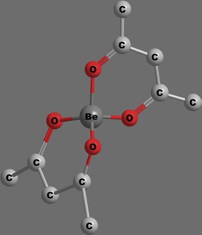 a.Tetrahedralcomplexes: Tetrahedralgeometryisfairlycommon infour-coordinatecomplexesofnontransitionmetalions.Thisgeometryinvolvessp3 hybridizationoforbitalsofthecentralatom. ThisgeometryisfavouredbylargeligandslikeCl ,Br ,I and smallmetalionslikeBeþ2 andAlþ3.Complexeslike[BeF4]2 , [ZnCl4]2 andBe(acac)2,shownin Figure11,illustratethetetrahedralcomplexeswithCN ¼ 4.
