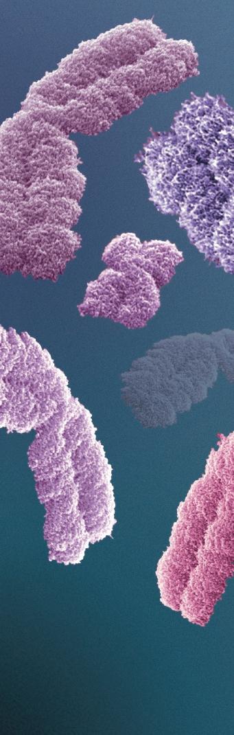 FIGURE 1. 2 A colorized image of a replicated set of human male chromosomes. Arranged in this way, the set is called a karyotype.