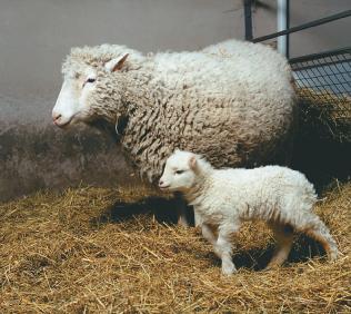 FIGURE 1.8 dolly, a finn dorset sheep cloned from the genetic material of an adult mammary cell, shown next to her first-born lamb, bonnie.