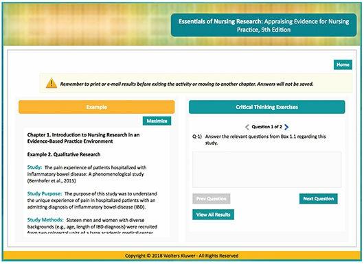 LeadingContentinContext.Digitalcontentfrom Essentials of Nursing Research, ninthedition,isembeddedinourPowerfulTools,engagingstudentsandencouraging interactionandlearningonadeeperlevel