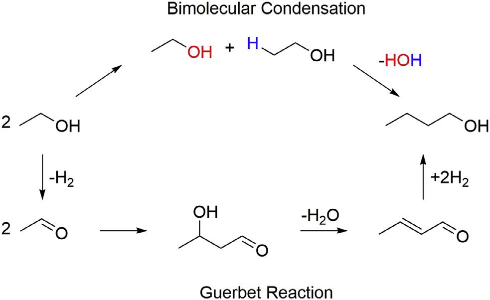 AssuggestedbytheworkofOgoandcoworkers,videsupra,theGuerbetchemistrycanbealsoextendedtooligomerizeethanoltoyieldmixturesofhigheralcohols containing3 5carbons.Thesemixturesarenormallyburntandusedasfuels (Gabrie ¨ lsetal.,2015).Therehasbeenincreasedinterestinthesehigheralcohols, though,becauseoftheirpotentialtobeusedbothasbiofuelsandasrawmaterials forobtainingheavieroxygenates.