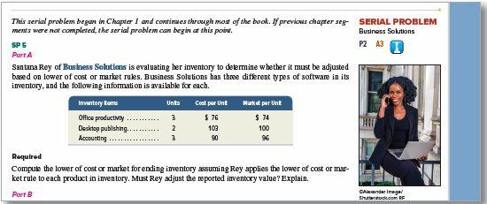 Serial Problems use a continuous running case study to illustrate chapter concepts in a familiar context. The Serial Problem can be followed continuously from the first chapter or picked up at any later point in the book; enough information is provided to ensure students can get right to work.