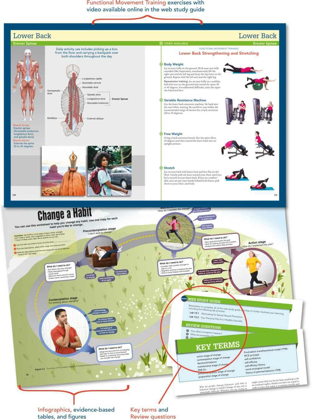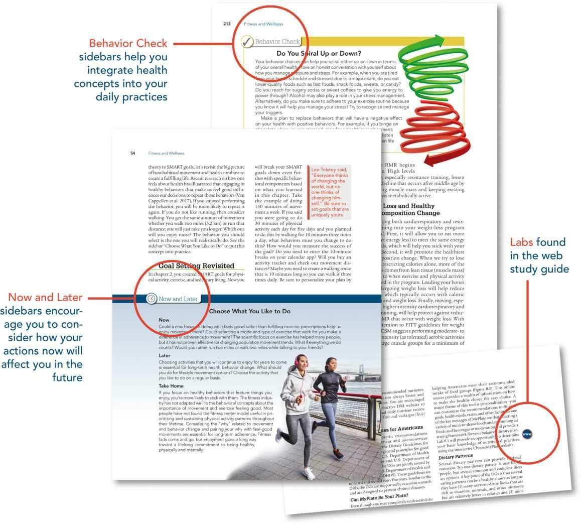 The book will help you reach your goals. Each chapter has key terms to help you focus your study efforts and behavior check sidebars with specific ideas for integrating health concepts into your daily practices. These sidebars encourage small steps, which are helpful for removing barriers to change Also included in each chapterareNowandLatersidebars,whichhelpyourealizethatthepositivechoicesyoumaketodaywilllead toahealthiertomorrow.