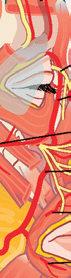 in the subcutaneous layer of the face that connect to the retaining ligaments and contribute to the septa that create the fat compartments of the face. They also insert or interdigitate with the other mimetic muscles. So while the frontalis muscle wrinkles the forehead and raises the eyebrow it helps open the eye widely by partially inserting ino the upper fibers of the orbicularis oculi muscle (Fig 17).