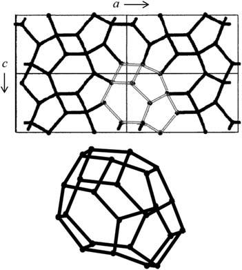 formanorthorhombicstructure,inwhichwatermoleculesform14-hedracages withfourtetra-,fourpenta,andsixhexagonalfaces(445466)thatareabletopack three-dimensionallywithouttheneedforothertypesofpolyhedrons [4].Thestoichiometriccompositionofaunitcellcanbepresentedas4T3 24D2O,whereT3 isa 445466 cage.Projectionofthestructurealongthebaxisispresentedin Fig.1.3