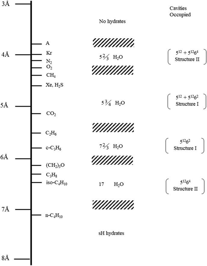Comparisonofguestmoleculesizesandcavitiesoccupiedassimplehydrates.