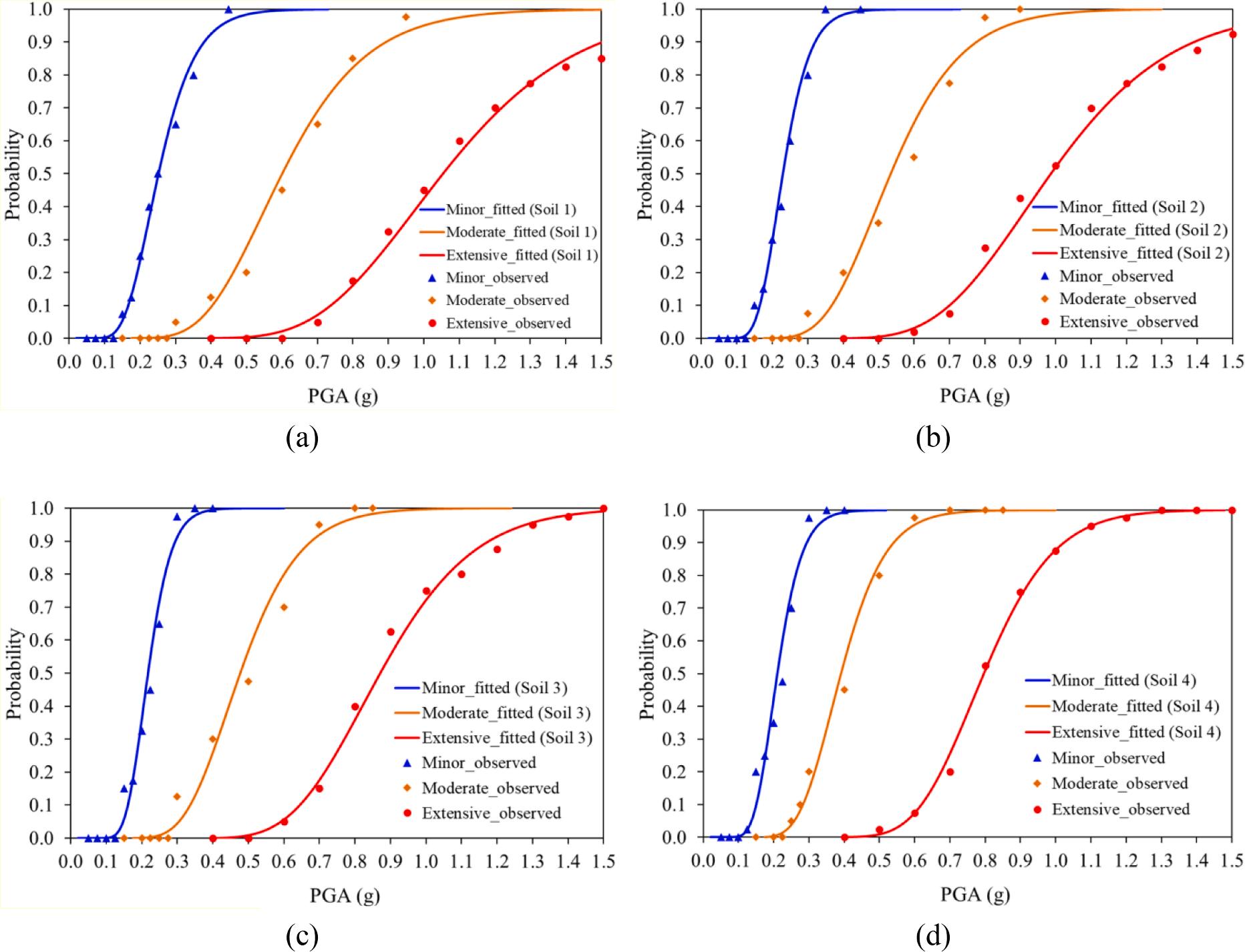 In the fragility-based approach, seismic fragility curves corresponding to the variance in the damage index with an increase in the intensity measurement for various levels of damage states (DSi) are plotted. Thus, the damage states represent the damage condition of MUABs associated with a limit state of the structural response.