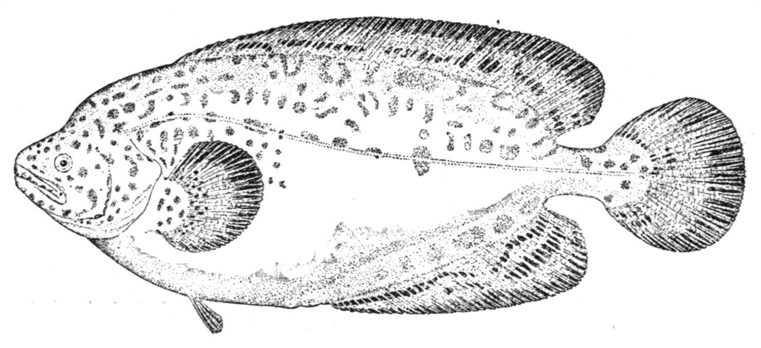 Fam. 12. Anabantidae.—Differ from the preceding, to which they are closely related, in having part of the dorsal and anal fins and the outer ventral ray spinous, and a shorter, Perch-like body covered with ctenoid scales. The accessory superbranchial organ is still more developed, with thin bony laminae, which are more or less folded and covered with a mucous membrane. These Fishes can live a long time out of water, and the name Anabas scandens, or Climbing Perch, recalls the fact that its first observers in India ascribed to it the habit of climbing up low trees by means of the spines with which its gill-covers and ventral fins are armed. This species, which attains