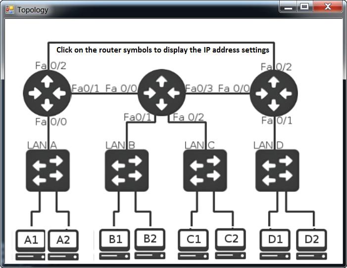 (10.10.200.1) to RouterB FA0/2 (10.10.200.2) RouterA FA0/2 (10.10.100.1) to RouterC FA0/2 (10.10.100.2)