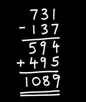 The earliest appearance of the 1089 trick itself seems to be in an 1896 French edition of a (now classic) book on mathematical recreations by Rouse Ball, and it features a slightly different explanation of why the trick works (Fig. 12).