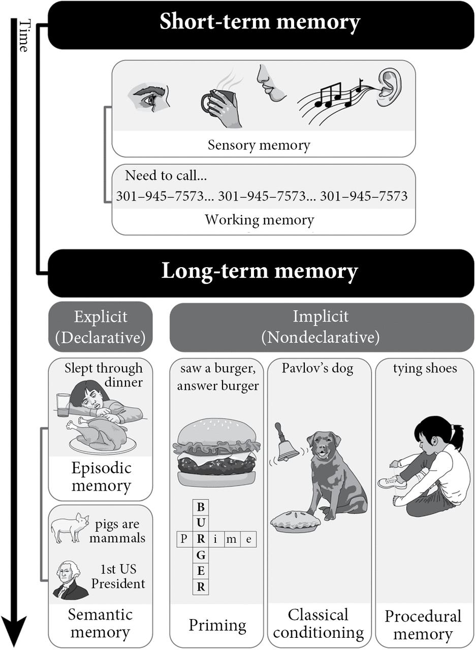 It would not be an exaggeration to say that the contrast between Henry’s profound amnesia for events and his normal ability to remember other things—such as knowing the set of motions needed to unlock the door—ushered in the modern era of memory research. We now understand that there are multiple memory systems in the brain, each with its own anatomical network that allows different types of information to be remembered. These memory systems can be classified in different ways, such as the timeframe in which they