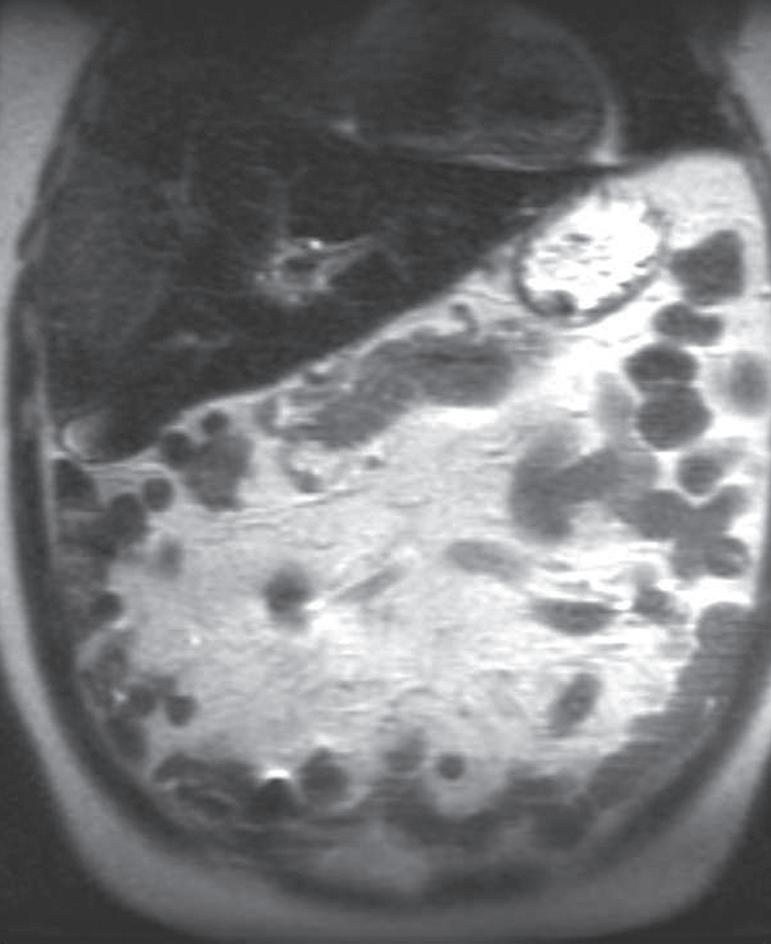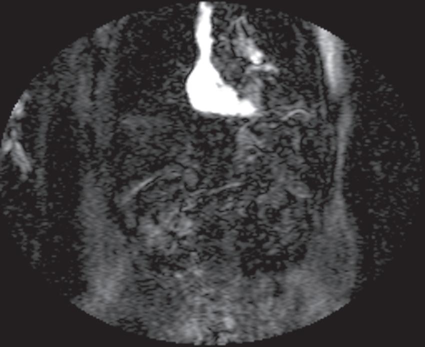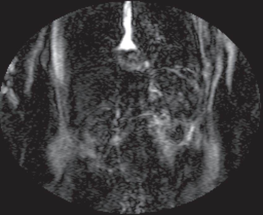 an anatomic overview. Assess proper coil placement—maximal signal should originate from the ROI—to the center of the abdomen. Needless to say, the entire ROI should be visible with adequate SNR (Fig. 1.18).