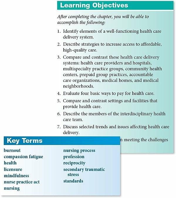 Patients today spend fewer days in the hospital, are frequently transferred both within the hospital and between health care institutions and home, and need to rely on rapidly proliferating community-based health care resources. New content on accountable care organizations, medical homes, and medical neighborhoods, as well as content on the new roles for nurses (nurse coach, clinical nurse leader, nurse navigator, and nurse care coordinator) highlight both traditional and innovative care in institutional and community-based practice settings. New content includes the Robert Wood Johnson Foundations Healthy Communities resources and CDC’s Division of Community Health (DCH), which created Partnerships to Improve Community Health (PICH).