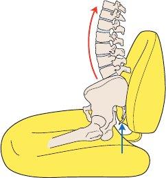 • Raise the tailbone up to establish correct spinal curves. All three normal back curves should be present while sitting.