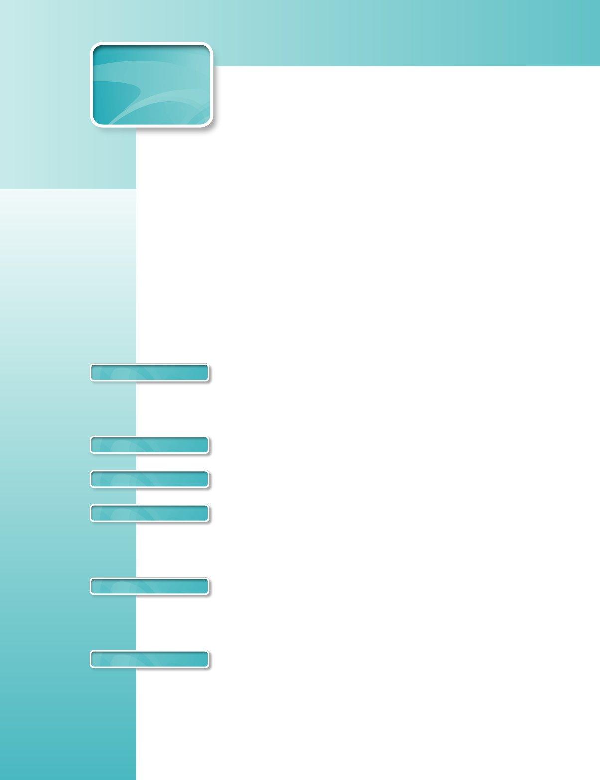 1. Module outlines. Each chapter begins with a module outline that provides an overview o content and makes it easier to locate material within the module. The outline provides the reader with an organizational ramework with which to approach new material.