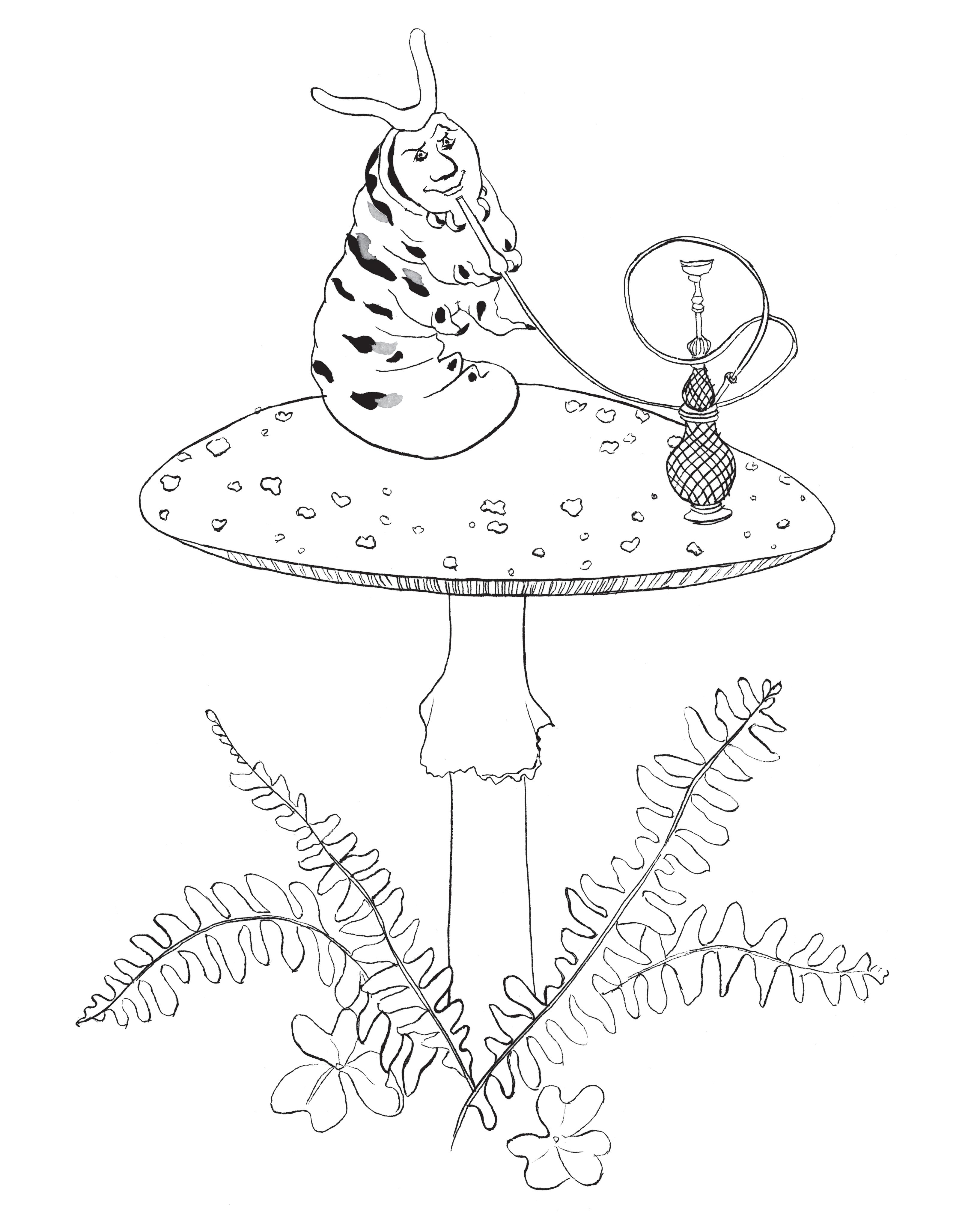 It’s likely that Carroll learned about the mushroom in question, probably the fly agaric ( Amanita muscaria), from reading English mycologist Mordecai Cubitt Cooke’s 1860 book The Seven Sisters of Sleep . This book describes the effects of eating the fly agaric as follows: “Erroneous impressions of size and distance are common occurrences . . . a straw lying on the road becomes a formidable obstacle to overcome.” It should be noted that the first illustrator for Carroll’s own book, John Tenniel, depicted not a fly agaric but a generic mushroom. Carroll’s own illustration for Alice’s Adventures Under Ground looks like a generic mushroom, too.