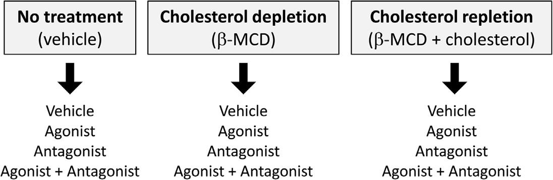 Methyl-a-cyclodextrin(a-MCD)maybeusedascontrolfor b-MCD(Vial& Evans,2005).Cholesterolrepletionisperformedbypretreatingwithcholesterol/b-MCDsolutionfor1hat37 C.Cholestane-3,5,6-triol,aninactive analogofcholesterol,maybeusedascontrolfortheuseofexogenous cholesterol(Murtazina,Kovbasnjuk,Donowitz,&Li,2006).Todeterminethe effectofagonistorantagonisttreatment,cellsshouldbeserum-starvedforat least1hpriortotreatmenttoachieve“basal”conditionspriortotreatment. Additionalcontrols,suchastheuseofthedrugvehicle,shouldbeconcomitantlyperformed.