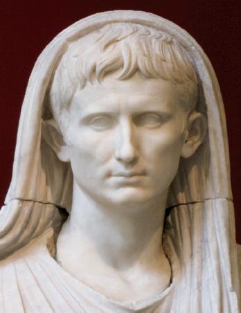 I-10 Head of the statue of Augustus as pontifex maximus, from Via Labicana, Rome, Italy, late first century bce. Marble, statue 6′ 10″ high; detail 1′ 4 1 2 ″. Palazzo Massimo alle Terme, Museo Nazionale Romano, Rome.