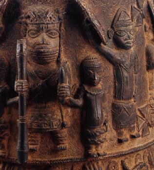 Relief Sculpture. Statues and busts (head, shoulders, and chest) that exist independent of any architectural frame or setting and that viewers can walk around are freestanding sculptures, or sculptures in the round, whether the artist produced the piece by carving (fig. I-10) or casting (fig. I-17). In relief sculpture, the subjects project from the background but remain part of it. In high-relief sculpture, the images project boldly. In some cases, such as the medieval weighing-of-souls scene (fig. I-7), the relief is so high that not only do the forms cast shadows on the background, but some parts are even in the round, which explains why some pieces— for example, the arms of the scales—broke off centuries ago. In low-relief, or bas-relief, sculpture, such as the portrait of Hesire (fig. I-15), the projection is slight. Artists can produce relief sculptures, as they do sculptures in the round, either by carving or casting. The altar from Benin (fig. I-1) is an example of bronze-casting in high relief (for the figures on the cylindrical altar) as well as in the round (for the king and his two attendants on the top).