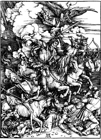 I-9 Albrecht Dürer, The Four Horsemen of the Apocalypse, ca. 1498. Woodcut, 1′ 3 1 4 ″ × 11″. Metropolitan Museum of Art, New York (gift of Junius S. Morgan, 1919).