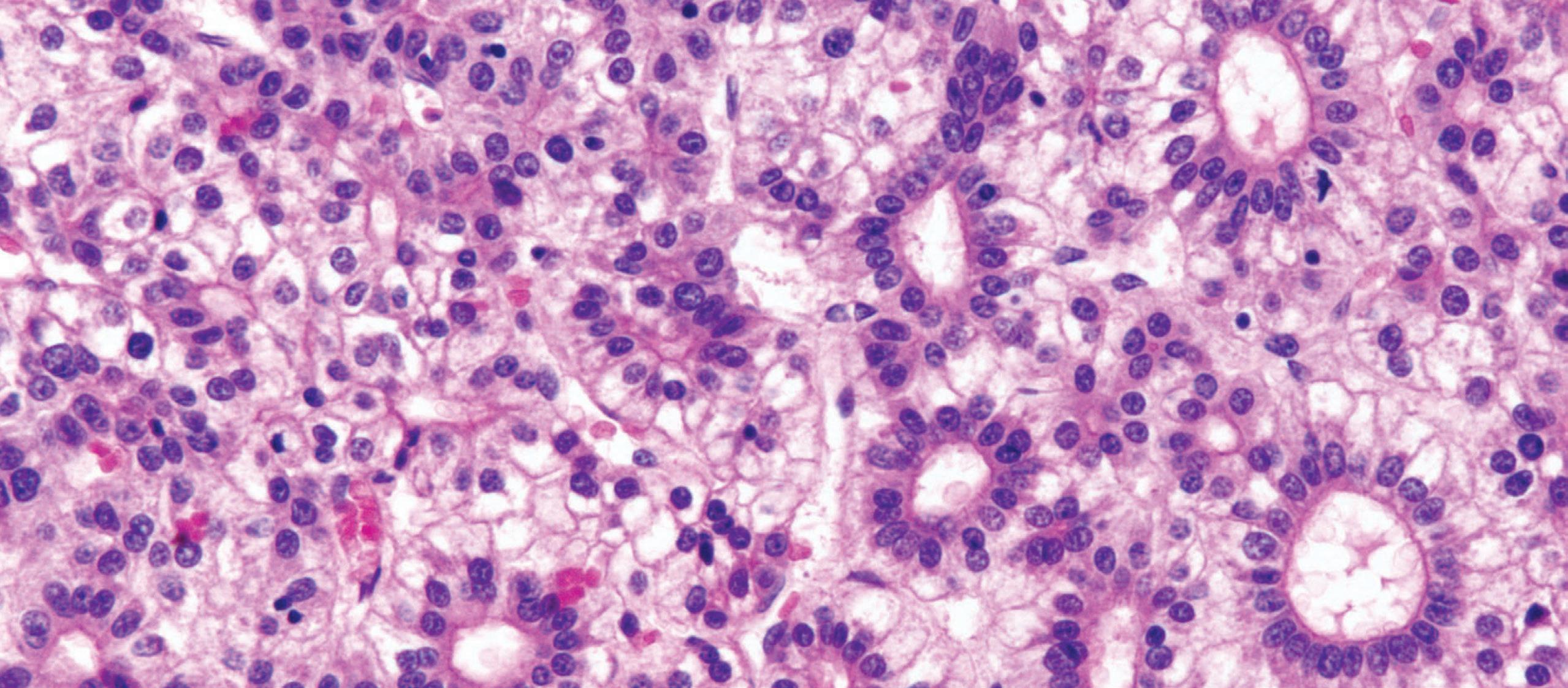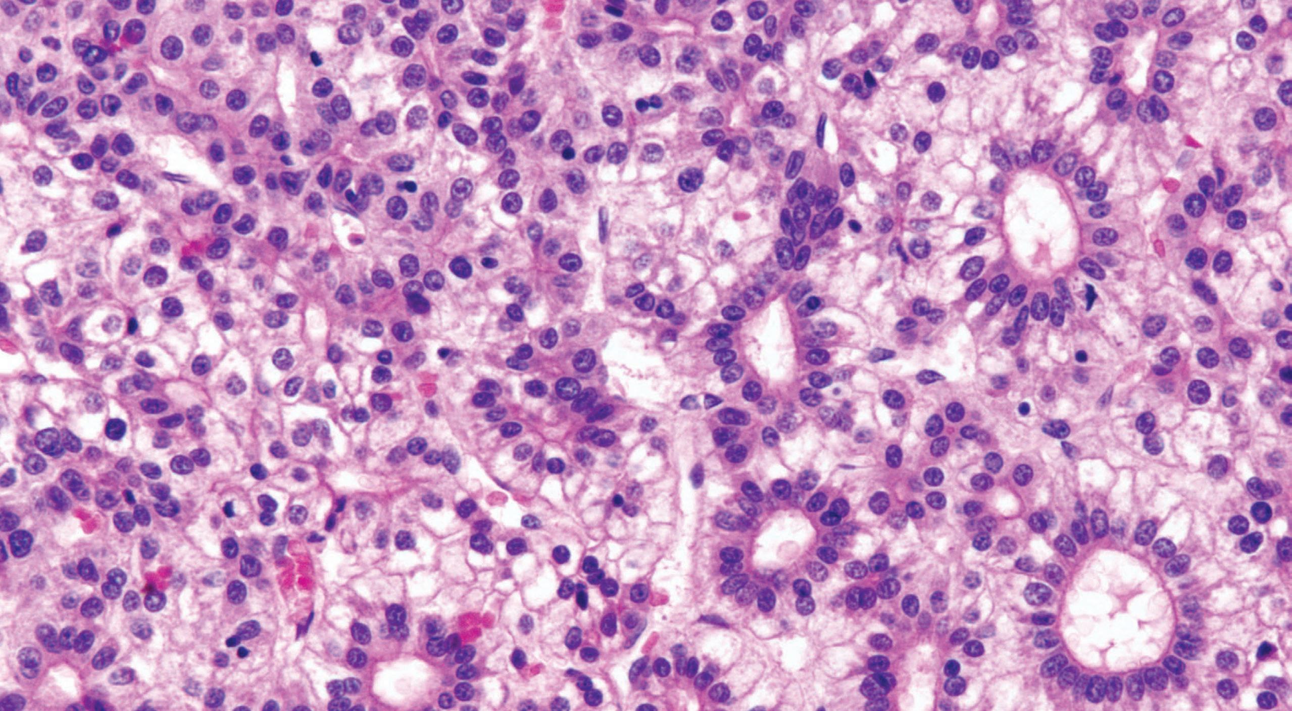 ■ vacuolated cytoplasm and preserved nuclear-to-cytoplasmic ratio