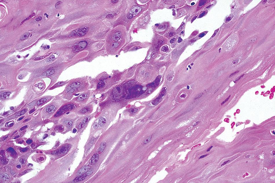 ■ Multinucleation or atypia of viral esophagitis can be confused with radiation- or chemotherapy-induced damage and atypia. immunohistochemical stains for viral entities should be used
