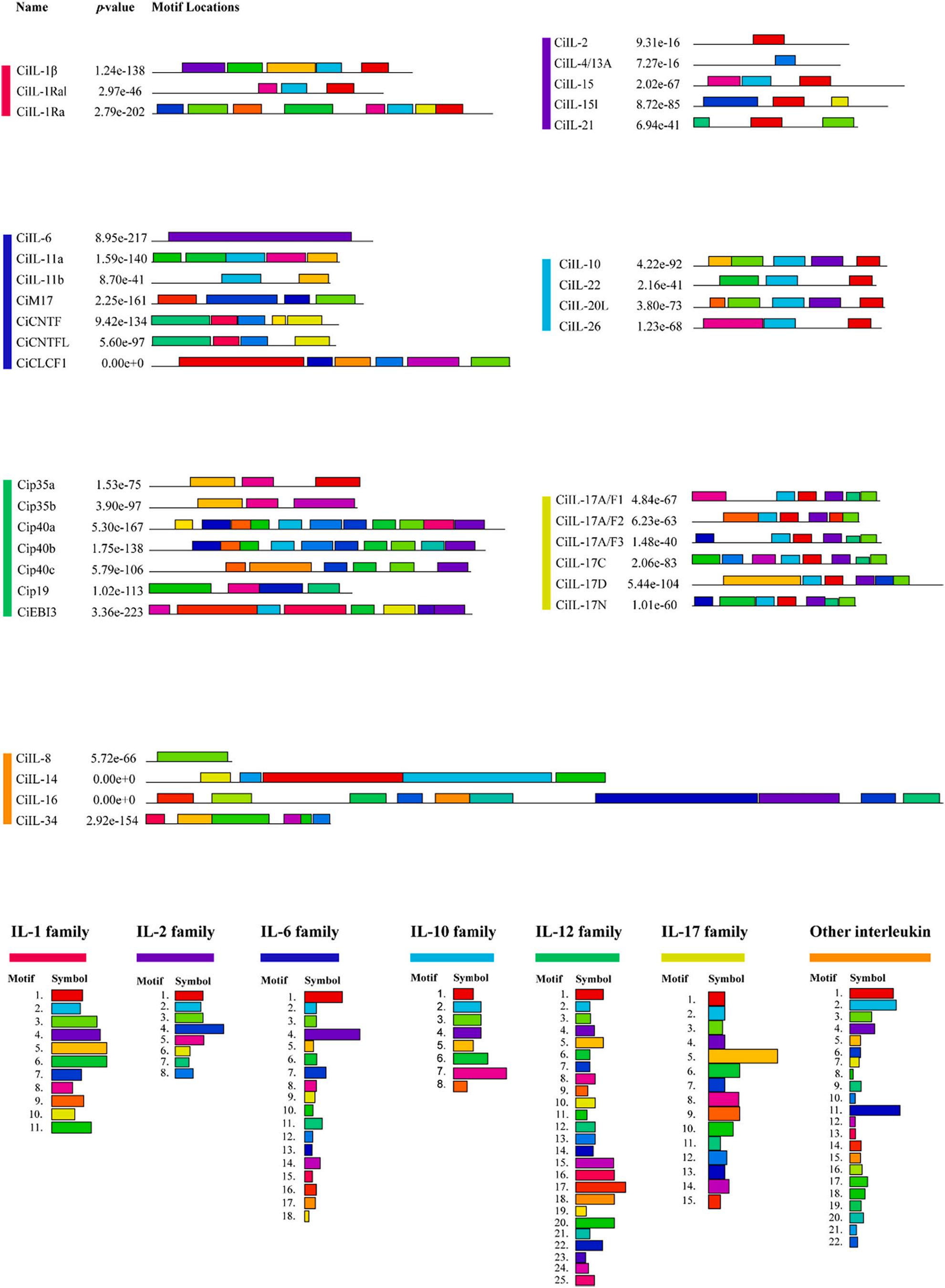 Sequence characteristics of H. sapiens and C. idella interleukin members.
