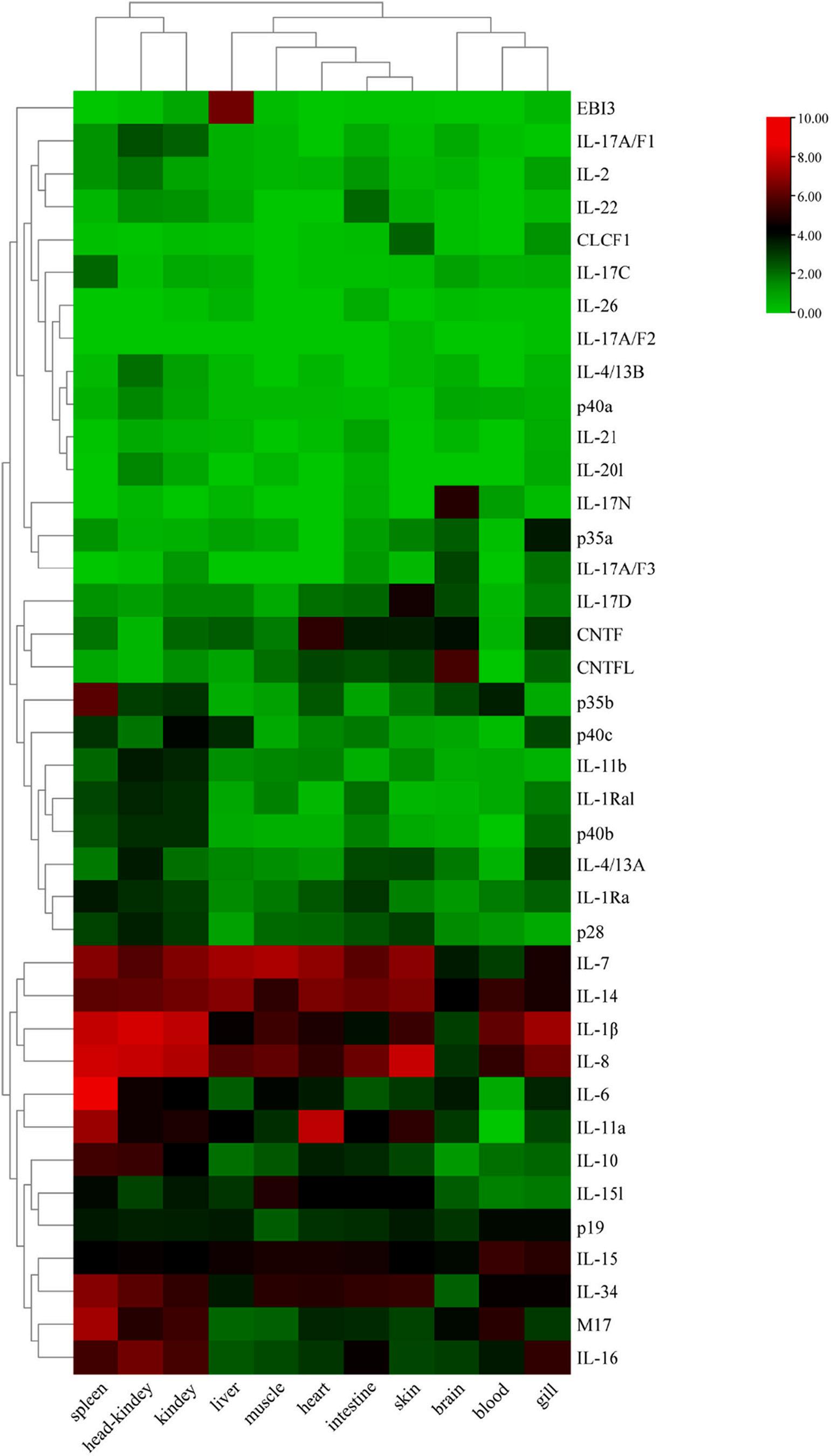 In the past years, many IL genes have been identified and characterized in grass carp, for example, IL-2, IL-4/13B, IL-21, and IL-34, among others (Lv et al., 2020; Xue et al., 2019; Yang et al., 2016b; Zhang et al., 2020). Several studies have shown that IL genes in grass carp played different roles in different tissues. The expressions of IL genes in grass carp can be induced by various stimuli, such as bacteria and viruses, which further indicated the important role of ILs in immunity. For example, almost all six IL-17 family members (IL-17A/F1, IL-17A/F, IL-17A/F3, IL-17C, IL-17D, and IL-17N) in grass carp were expressed at relatively low levels in head-kidney, tail fin, spleen, trunkkidney, and intestine, while expression levels were generally higher in blood, skin, liver, and muscle. In addition, these genes showed different tissue expression patterns in fish at 24 h after intraperitoneal injection or anal intubation of A. hydrophila, suggesting a role in the inflammatory responses (Sun et al., 2020a). Grass carp IL-34 was constitutively expressed in tissues, with the highest expression in spleen. And the expression was upregulated in spleen after infection with Flavobacterium columnare or GCRV II (Xue et al., 2019). Although some IL genes have been described in grass carp, there are still many ILs that remain unknown.