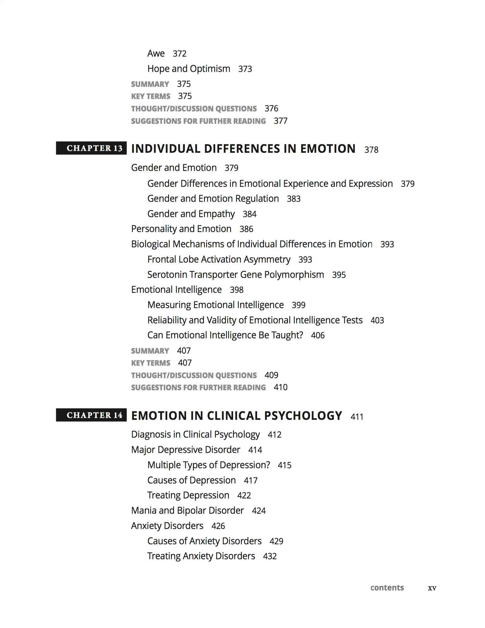 • Expanded discussion of gender and emotion, as well as genetic mechanisms of individual differences in emotion (Chapter 13); and