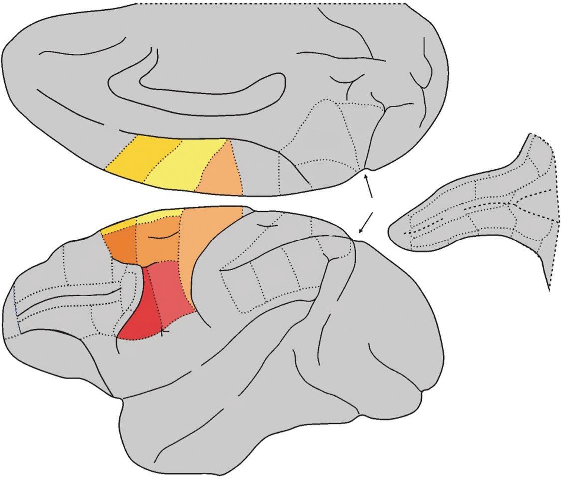 Fig. 1.1 Mesial and lateral views of the macaque brain showing the anatomical and functional parcellation of the agranular frontal cortex.