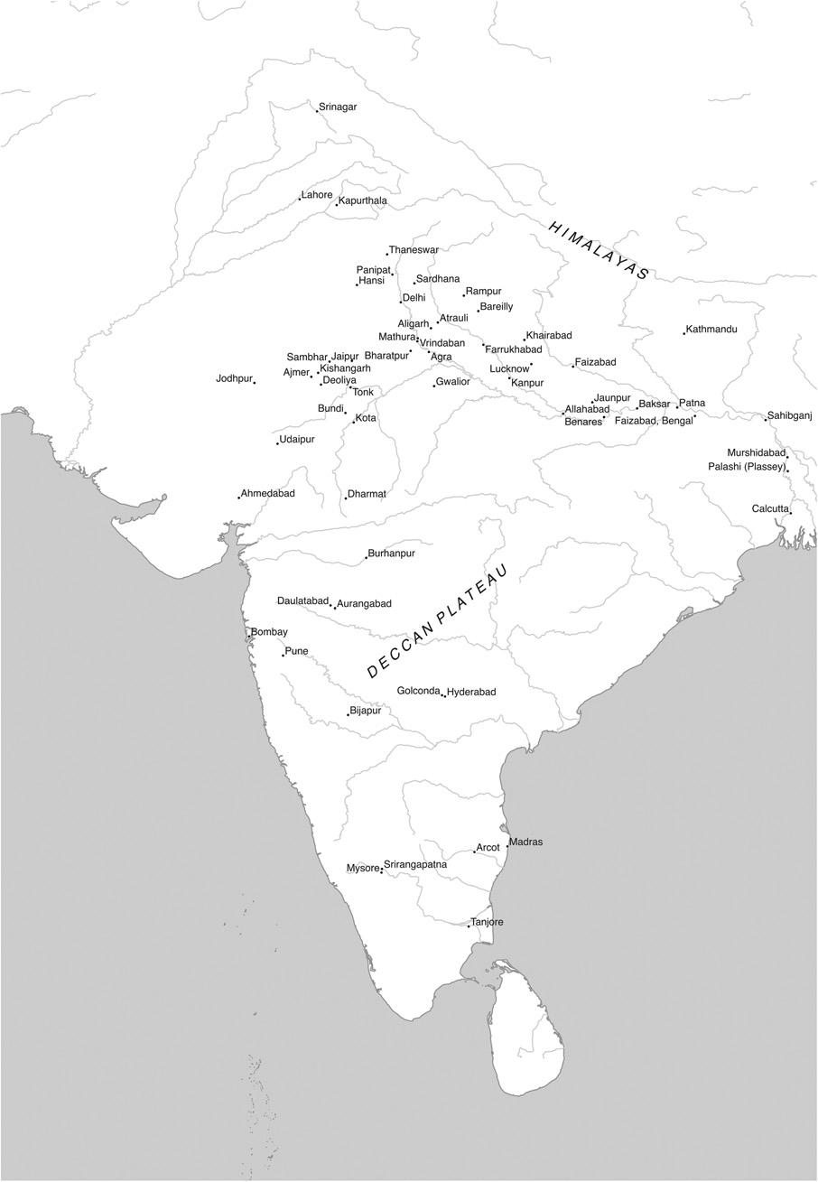 Thanksforscholarlyassistanceandfriendshiparedueinalphabeticalorder toDaudAli,JonBarlow,NickBarnard,PriyankaBasu,AmyBlierCarruthers,OliviaBloechl,RobinBunce,EstherCavett,TSRanaChhina, AdilRanaChhina,NicholasCook,AmlanDasGupta,JohnDeathridge,Katie DeLaMatter,ChrisDuckett,ArthurDudney,MunisFaruqui,Darren Fergusson,RoyFischel,AndyFry,ElizabethGow,BendorGrosvenor, VivekGupta,EmilyHannam,MatthewHead,TomHodgson,LiamRees Hofmann,RanjitHoskoté,DanishHusain,TomHyde,ICFAMily,David RMIrving,RadhaKapuria,MaxKatz,PashaMKhan,RazakKhan,Ustad WajahatKhan-sahib,ShailajaKhanna,ManaKia,TanujaKothiyal,Daniel Leech-Wilkinson,SaifMahmood,YusufMahmoud,NicolasMagriel,Peter Marshall,MAtharMasood,NickMcBurney,PhalguniMitra,Mohsen Mohammedi,AnnaMorcom,DanielNeuman,LaudanNooshin,Jenny Norton-Wright,RosalindO’Hanlon,RogerParker,HeidiPauwels,Norbert Peabody,CayennaPonchione-Bailey,RegulaQureshi,YaelRice,MaliniRoy, VikramRooprai,ZahraSabri,RanaSafvi,KevinSchwartz,SunilSharma, YuthikaSharma,ChanderShekhar,AyeshaSheth,GianniSievers,Nur Sobers-Khan,GabrielSolis,MartinStokes,MirwaissSidiqi,SueStronge, LakshmiSubramanian,JimSykes,NathanTabor,GilesTilletson,Mrinalini Venkateswaran,GuyWalters,FriederikeWeiss,RichardWolf,PeteYelding, ZehraZaidi,myamazingPhDstudentsandallmybeloved#Twitterstorians. ThankyouparticularlytoChrisBrookeforlendingmehisnearby flatwhen Ineededaquietspacetoworkin.
