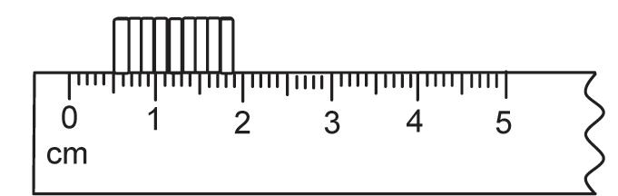 15. A pile of identical one rupee coins are placed over a metre scale as shown in the figure. The thickness of a one rupee coin is ________.