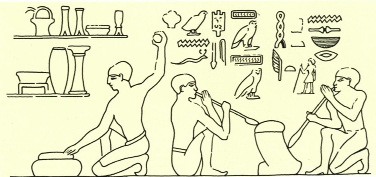 FIGURE1.6 AnancientEgyptianwallpaintingshowingaworkerpoundingongoldtoprepareafoil.