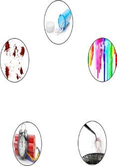 Chemicalforensicsamplescanbeclassifiedasdrugs,toxins,fireandarson samples,explosives,andpetroleumproducts.Drugsincludesamplessuch asnormalonesusedathighdoses,injections,andnarcoticandpsychotropic drugs.Toxinsaremainlypesticides,alcohols,orpoisons.Explosivesamples canbeintact,residue,orasampleofsoilwithanexplosive.Inthecaseof petroleumproducts,furtherclassificationincludesproductssuchaskerosene,diesel,andbiofuel.Thesedifferentkindsofchemicalevidencearecollectedandpreservedindifferentmanners(HouckandSiegel,2010).