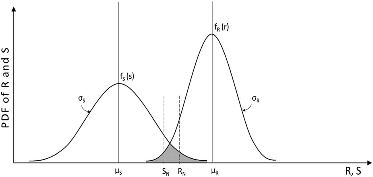 Incorporatingthepresenceofuncertaintyinthedesign,andreferringto Fig.1.2,theprobabilityoffailure, pf, canbedefinedas P(R < S)andcanbe estimatedas