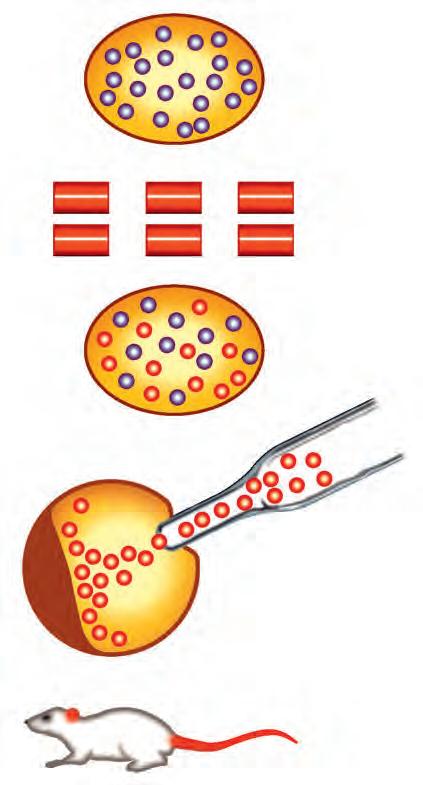 are selected. The “knockout” embryonic stem cell is then introduced into the blastocyst of a developing embryo. The resultant animals are chimeric; only a fraction of the cells in the animal contain the targeted gene. If the new gene is introduced into some of the germline cells of the chimeric mouse, then some of the offspring of that mouse will carry the mutation as a gene in all of their cells. These heterozygous mice can be further bred to produce mice homozygous for the null allele.