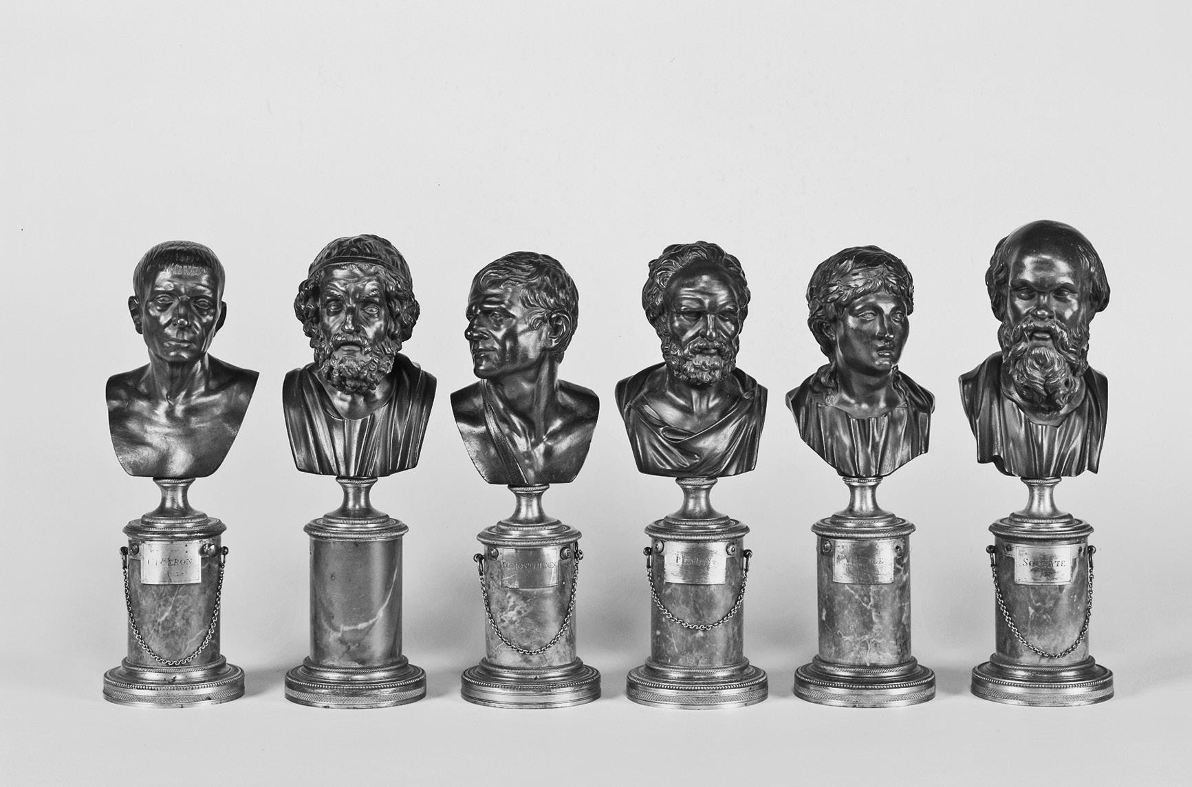 Affectionately known in the Adams family as the “household gods,” these small bronze busts have stood watch over a vast cache of private papers in Quincy for more than two centuries. En route between high-profile diplomatic appointments, John Quincy Adams purchased the set of six orators (Cicero, Homer, Plato, Virgil, Socrates, and Demosthenes) in Paris in 1815. Antoine-André Ravrio, 1815; Adams National Historical Park