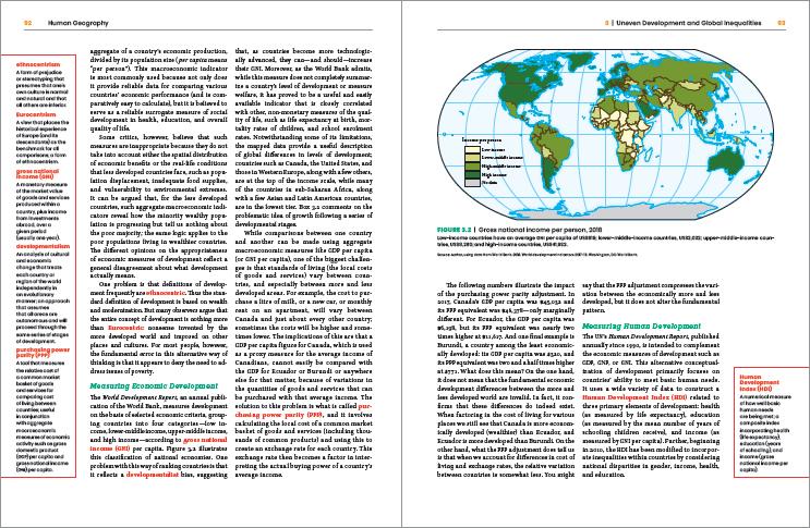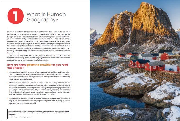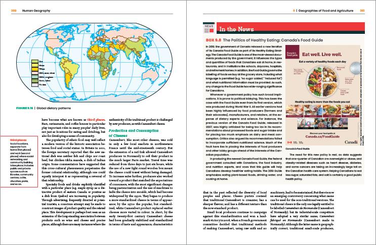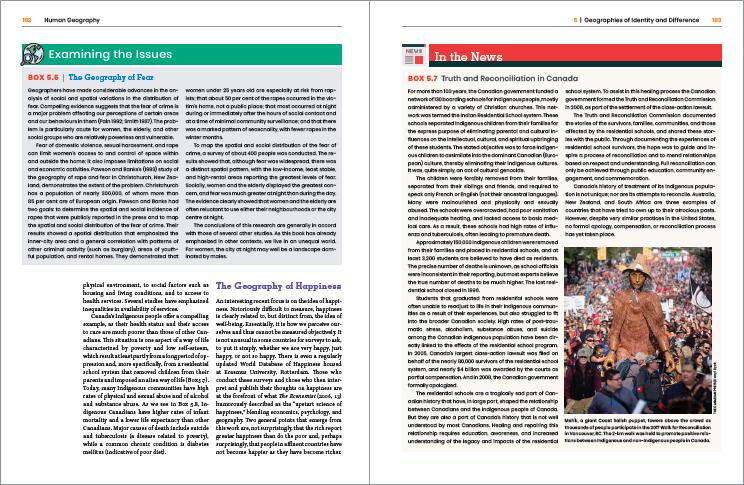 The glossary was heavily revised and most concept definitions reflect a more streamlined and precise phrasing. In addition, the glossary contains over 70 new terms. More significantly, over 25 per cent of the box content in this edition is new. These boxes explore current topics such as Brexit, Canada’s 2019 Food Guide, and the Truth and Reconciliation Commission, and each explicitly shows how issues are better understood by applying a human geographic perspective.