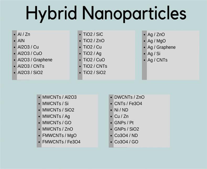 Hybridnanofluidsasanadvancedgroupofnanofluidsare engineeredbydispersingcompositenanoparticlesortwodifferenttypesofnanoparticlesinthebasefluid,representingnoteworthyphysicochemicalpropertiesthatareabsentinindividual nanoparticles [70].Inrecentinvestigations,hybridnanofluids areconsideredtoincreasethermalconductivityandtheperformanceofsolarenergysystems,i.e.,PVTsystems,solarcollectors, andstoragesystems,andthismakesthemremarkableduetothe synergisticimpactofindividualnanoparticles [71,72].Theprincipalpurposeofhybridnanofluidsistoobtainpromisingpropertiessuchasexcellentthermalconductivityandstability,physical strength,mechanicalresistance,reducedpumpingpowerlosses, heattransferperformancerate,betteraspectratio,andreduced productioncostofnanofluids.